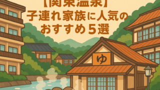 関東で子連れ家族に人気の温泉宿を厳選紹介。露天風呂・キッズスペース・プール・貸切風呂など、家族旅行を快適にするポイントも解説!